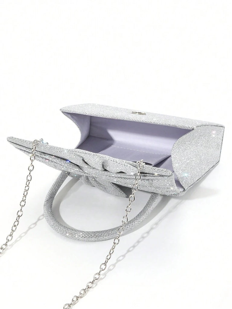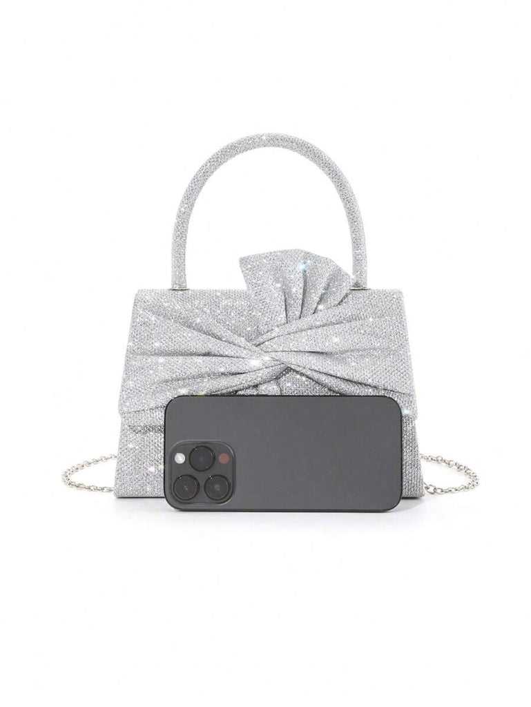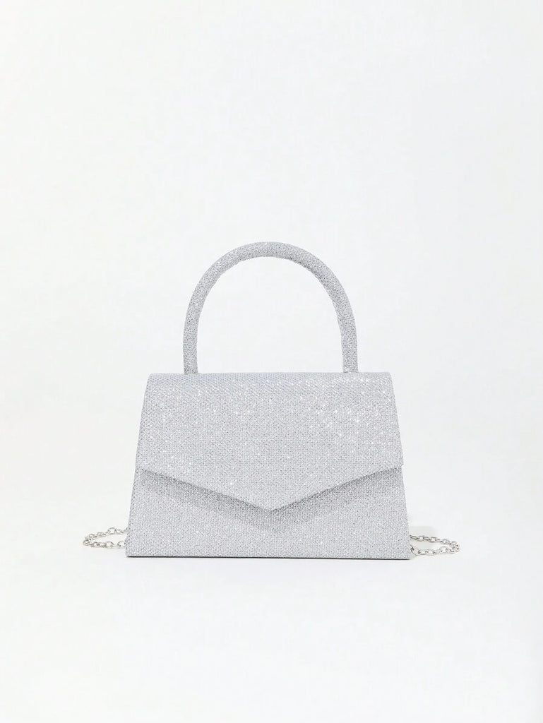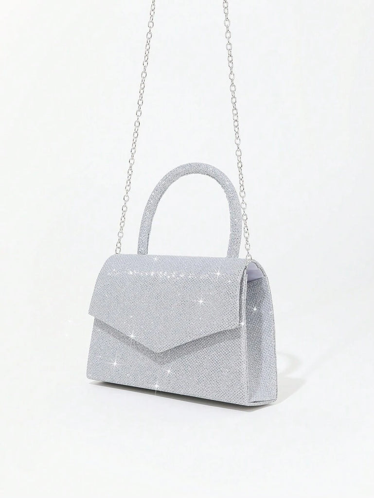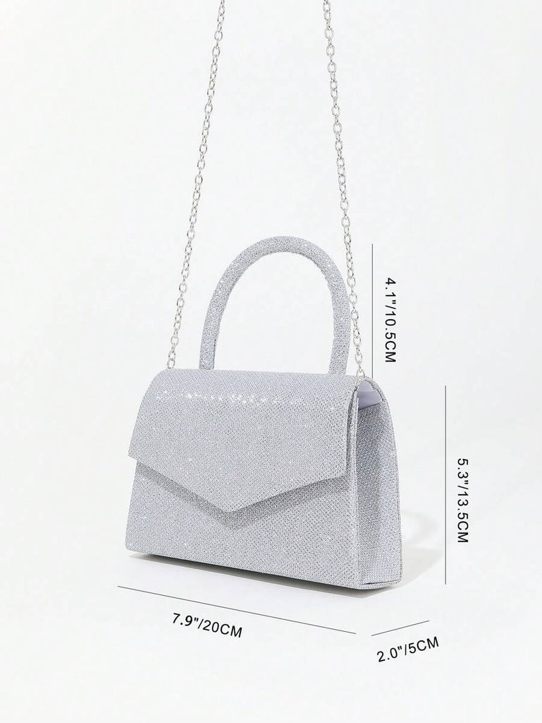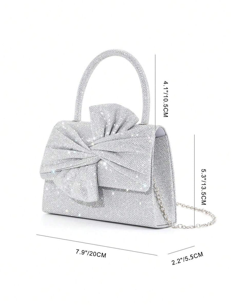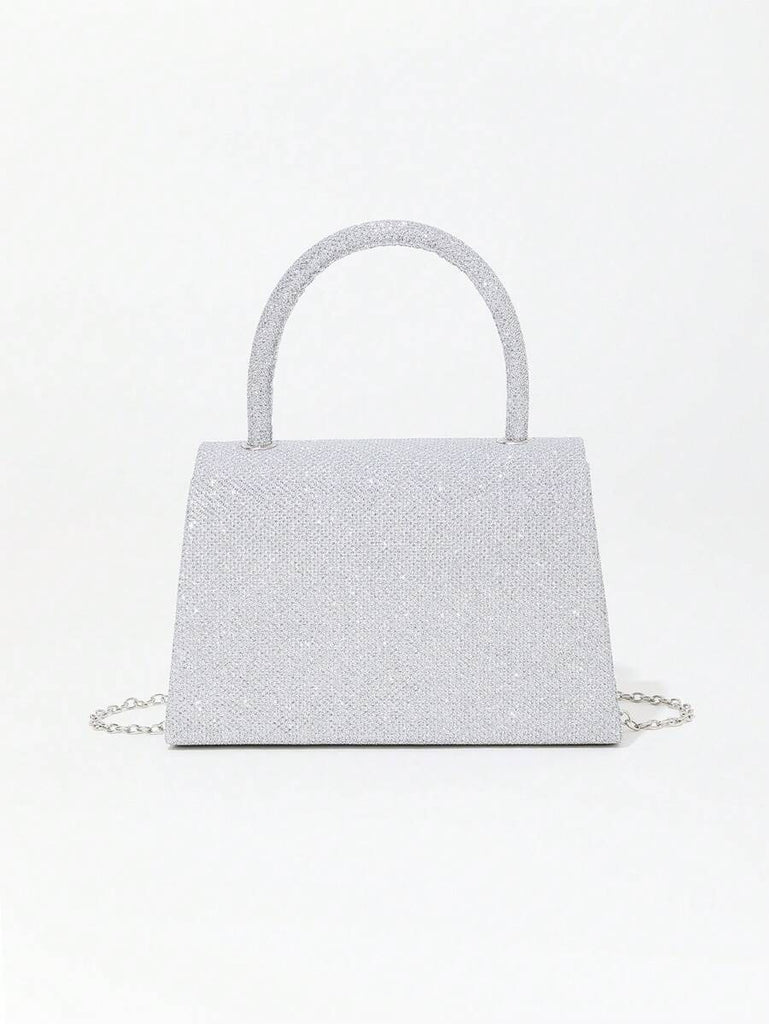 Mini Simple Fashion Handheld Square Bag For Party, Wedding And Banquet Classic Glitter Rhinestone Decor Evening Bag, Elegant Flap Top Handle Purse For Party, Prom, Wedding