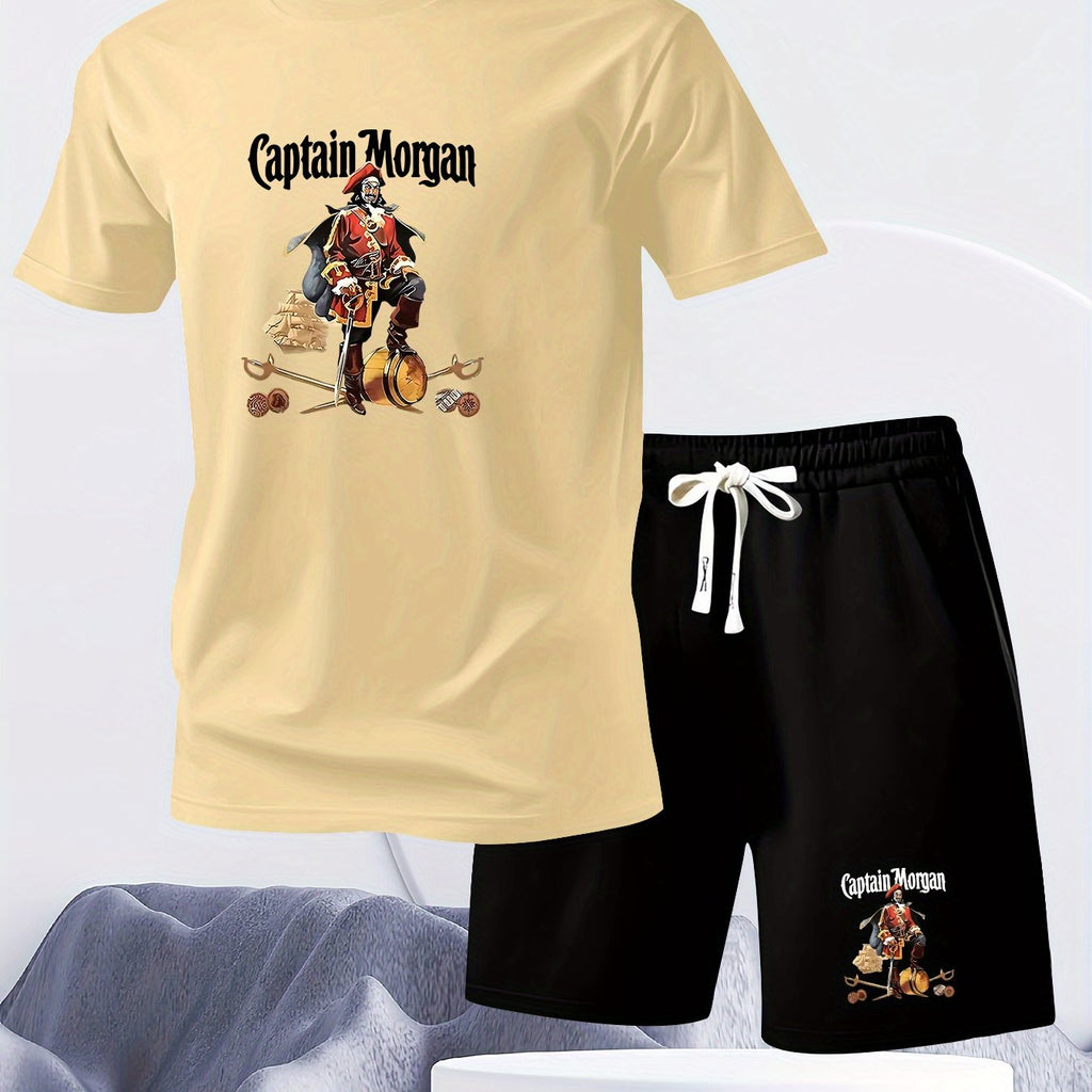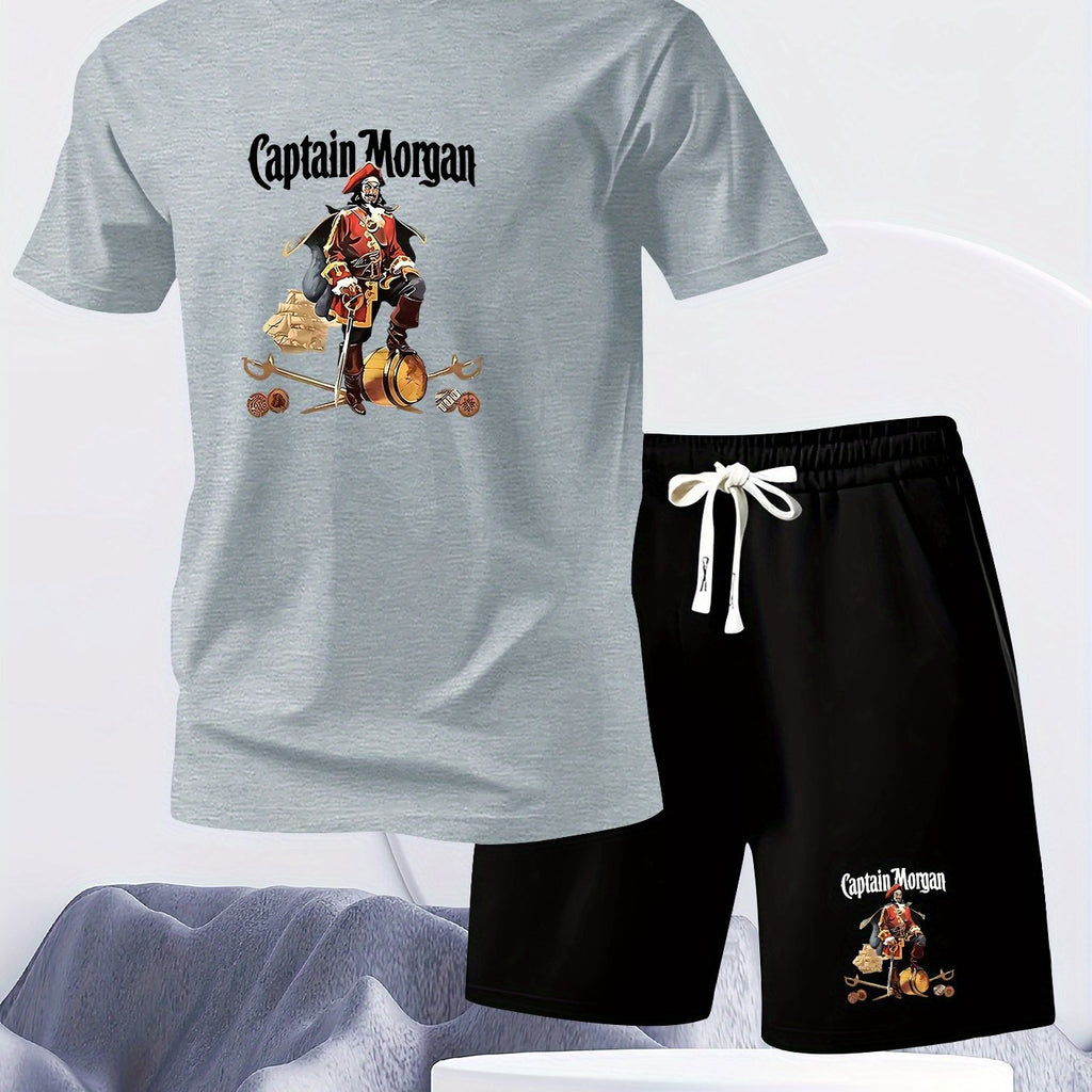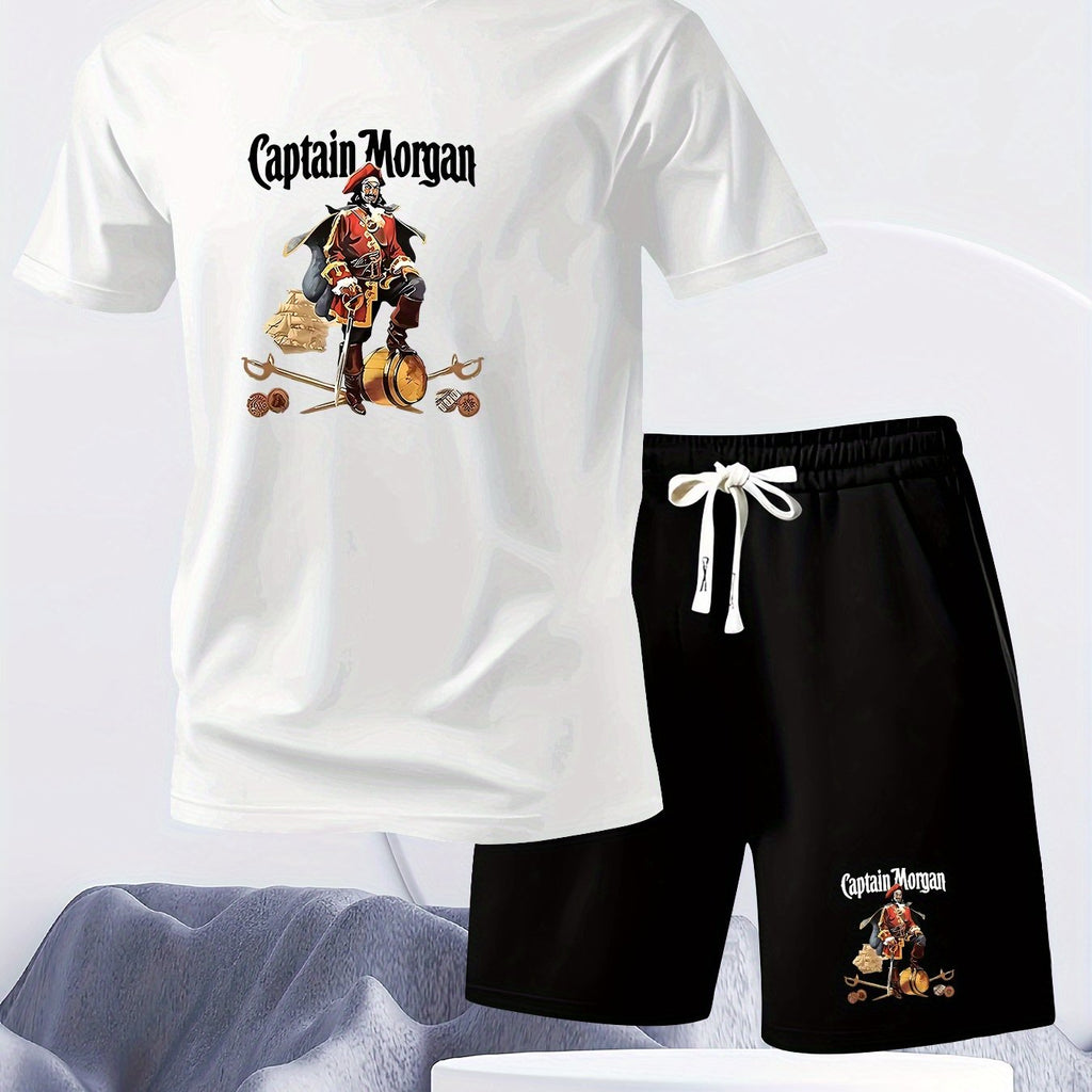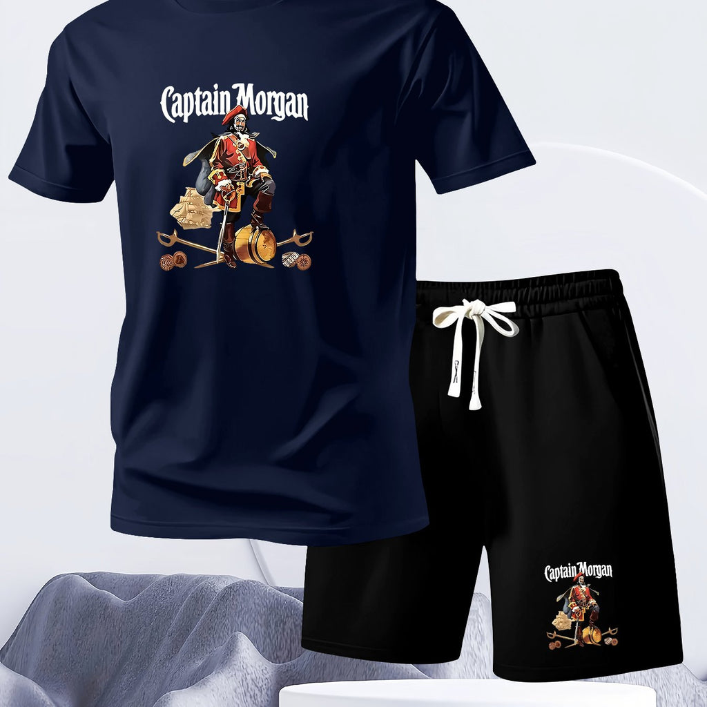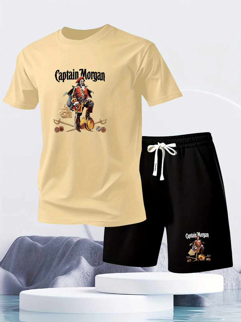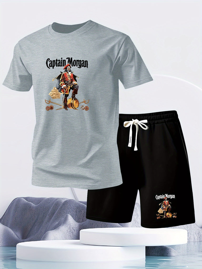 Summer Men's Casual Two-Piece Set, Captain for MORGAN Pirate Print Fashionable Versatile Sweatshirt Outfit